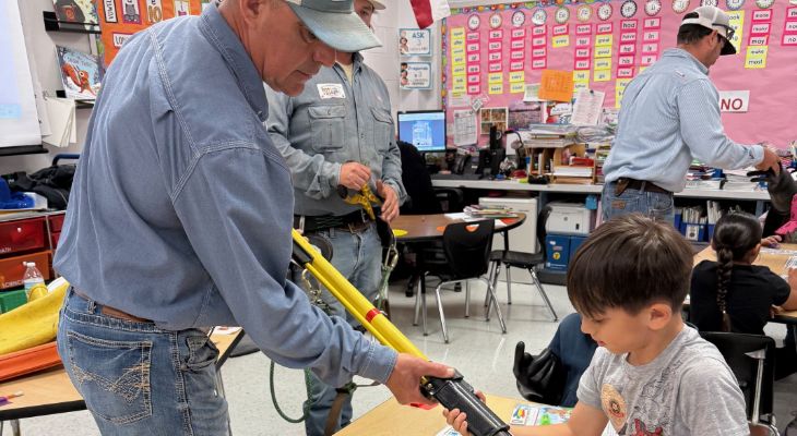 Members of the AEP Texas MRO team visited John F. Kennedy Elementary School in West OSO ISD on March 5 to speak with students about careers in the electric utility industry. During the visit, employees demonstrated how AEP Texas works to safely and reliably deliver power to communities across South Texas. Students had the opportunity to explore metering equipment used to measure electricity usage, try on personal protective equipment and ask questions about tools and responsibilities involved in utility work.