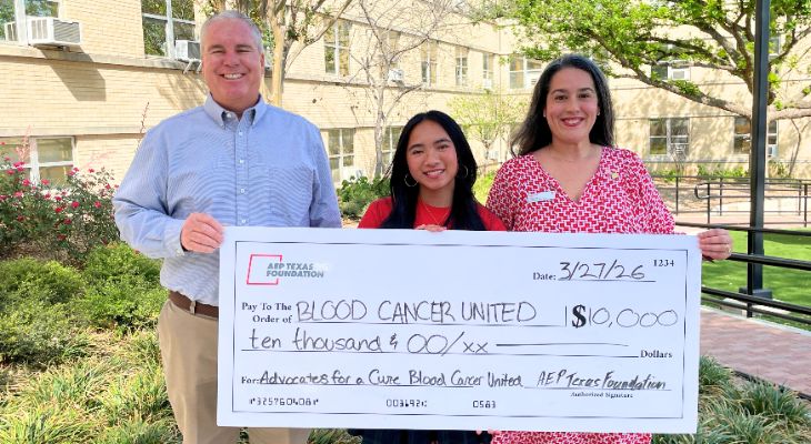The AEP Texas Foundation provided a $10,000 grant to Blood Cancer United via the Student Visionaries of the Year program, which empowers high school leaders to raise funds and awareness for blood cancer research and patient support. The donation was coordinated through collaboration between AEP Texas External Affairs Manager Jimmy Earnest and Campaign Development Manager Jessica Piña, with student advocate Andrea Mae playing a central role in advancing the campaign’s goals.